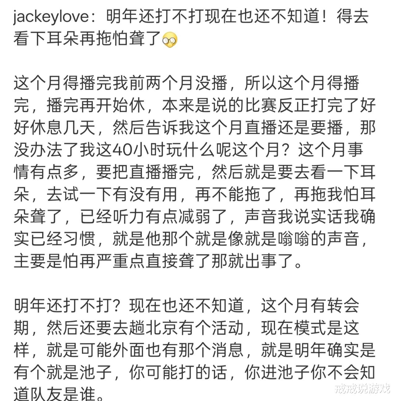 直播结束时,JackeyLove依然带着他标志性的表情与粉丝道别。不同的是,这次他带着一个任务——去解决那个一直在耳边嗡嗡作响的问题。电竞选手的健康问题从来都不是新鲜话题,但从手腕到背部,从现在到耳朵,职业伤病似乎永远能找到新的袭击方式。希望JackeyLove能够早日摆脱耳鸣的困扰,无论他最终决定继续征战赛场还是选择休养。毕竟,只有健康的身体,才能支撑起一个选手的电竞梦想。