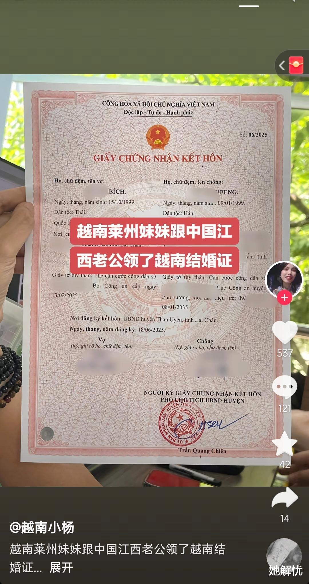 但抖音上老刷到“江西男生娶越南媳妇”,其实这事儿没那么邪乎。真实情况是,江西男生娶越南姑娘的比例连万分之一都不到,大多是算法推那些“新娘跑路”的劲爆新闻,搞得大家以为成了潮流。真要算起来,全国一年涉外婚姻也就5万对,江西能占多少?顶多几千对,分到全省一千多万适婚男青年头上,简直可以忽略不计。