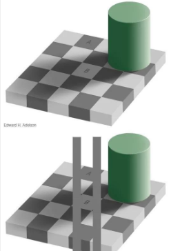 意识的承载是我们的大脑,但接受意识的是我们的五官。但科学家发现我们的感官在接受外界的事物时会做一定的处理。比如麻省理工的爱德华·阿德尔森教授给我们做了这样的实验,请看下图: