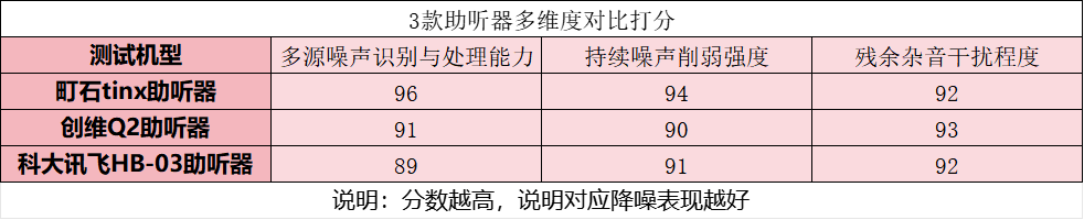 测评方法:本次测评场景覆盖街头施工点、学校走廊和家中卧室,分别佩戴这三款助听器,然后通过声压计监测噪声等级。每轮佩戴测试后,我还会从“多源噪声识别与处理能力”、“持续噪声削弱强度”、“残余杂音干扰程度”三个方向进行降噪打分,直观呈现各款助听器的降噪性能。