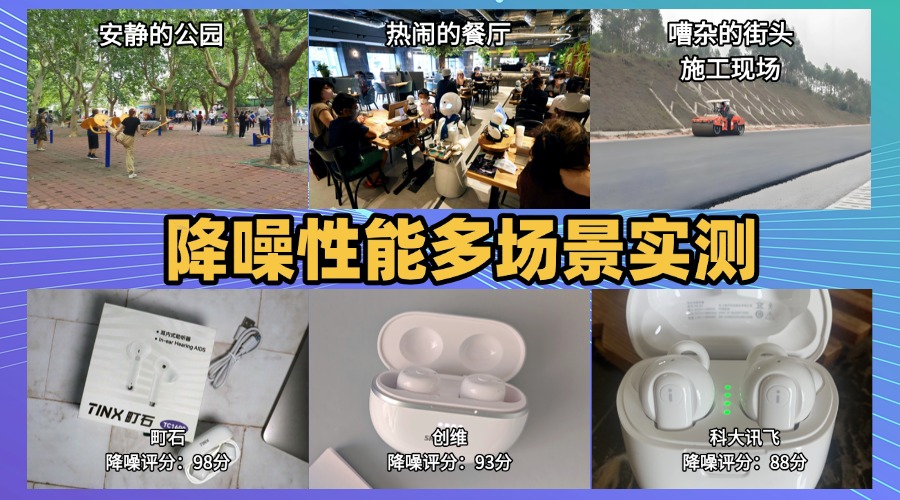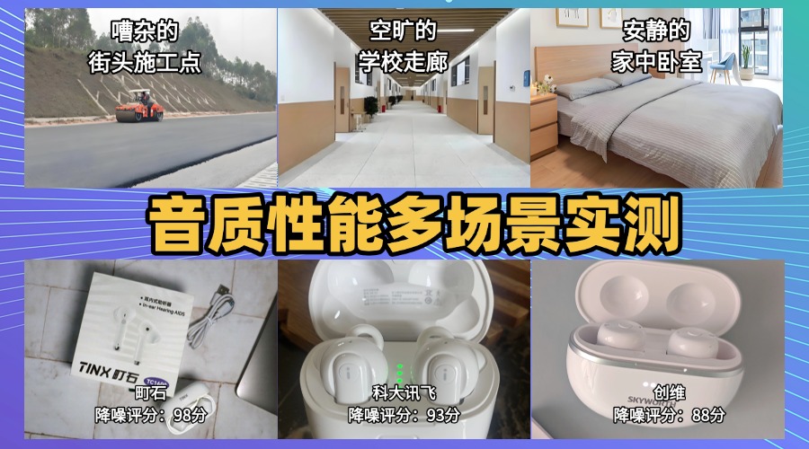 测评结果:町石 > 创维 > 科大町石助听器降噪测评表现町石助听器的降噪表现真心挺让人意外的。 无论是在安静的公园散步,还是在吵闹的餐厅、施工现场,甚至刮风的街头,它几乎没有杂音、啸叫或者电流声的干扰。在去除环境噪音、杂音、啸叫、电流声和风噪方面,整体表现都很均衡。 它用的是SC-PIIE6段9区降噪技术加上360度双向平衡柔化算法,再配合128通道WDRC声音分离系统,可以自动识别周围各种噪声并灵活削弱。说真的,我在咖啡店里边听朋友说话边写东西,背景噪声几乎没影响,耳朵也不累,这种降噪体验挺舒服的。创维助听器降噪测评表现创维助听器的降噪表现还算可以,整体听感没什么明显短板。 在家里或普通餐厅,人声能被清楚捕捉到,环境噪声也能被一定抑制。去除环境噪音和杂音方面表现不错,啸叫和电流声略微存在。 它采用了多通道降噪系统和自适应算法,对一般噪声环境优化得不错,但一旦遇到大风或复杂街道,低频风噪稍厚,声音层次平了一点。总的来说,日常聊天或看视频够用,但想要完全安静的体验,这款可能稍有局限。科大讯飞助听器降噪测评表现科大助听器整体表现一般,中规中矩。 在安静环境下听对话没问题,但背景噪声会有点干扰。去除环境噪音和风噪效果不错,但杂音和啸叫抑制稍弱。 它用多频带降噪和动态处理技术,能让人声在大多数场景下清楚,但遇到高噪声或风大环境时,会有电流声或杂音偶尔出现。总的来说,日常使用够用,但在复杂环境下就不那么舒服了。