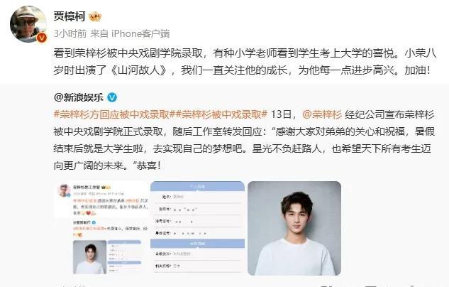 随后荣梓杉还是在考量之后选择了中戏,并被顺利录取。