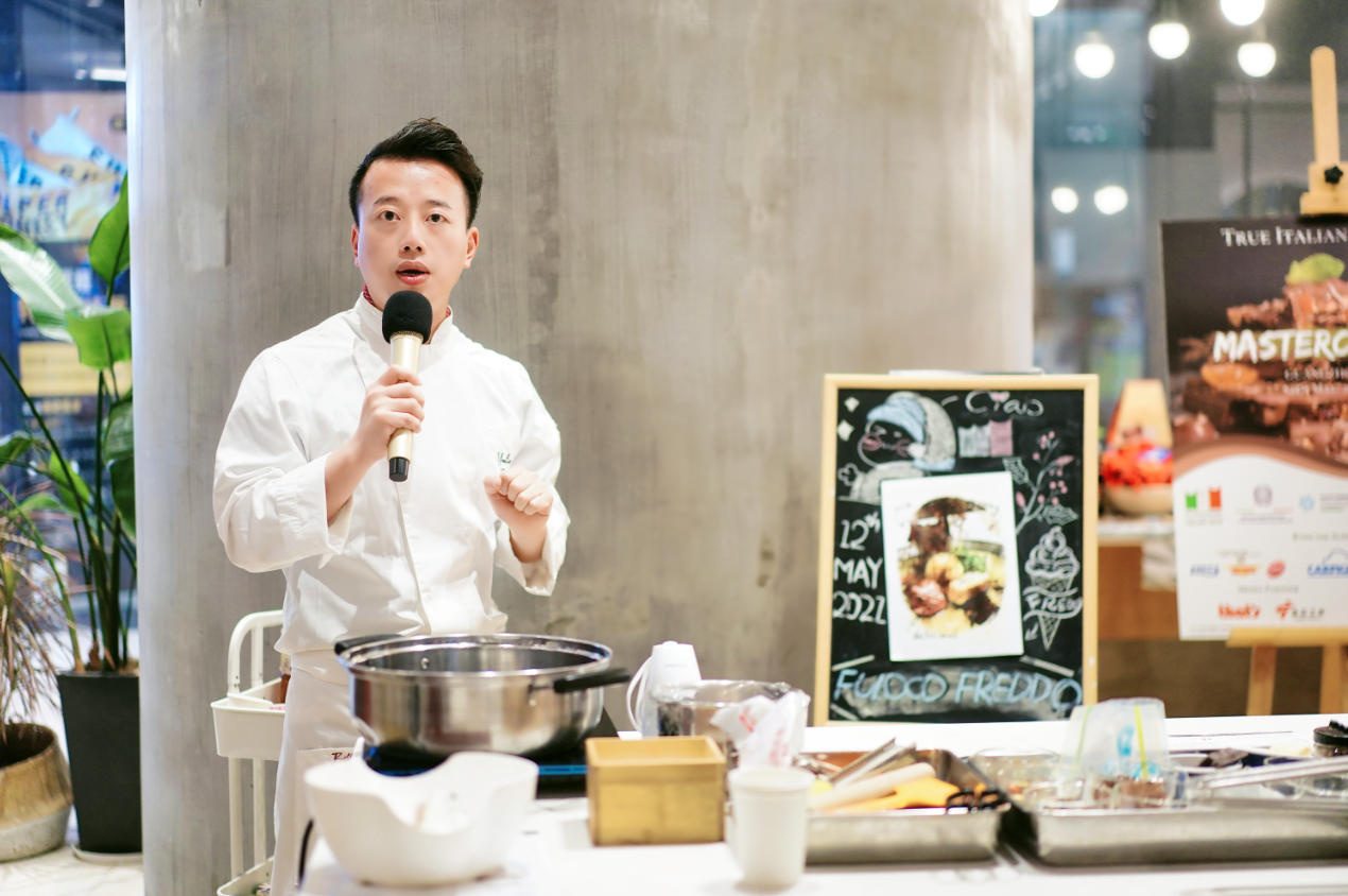 来自佛山Bellavita意大利餐厅的张友亮大厨分享了他创造甜品“冷色焰火”的灵感和理念,随后大家便在大厨的带领下一步步着手制作这道特别的甜点。