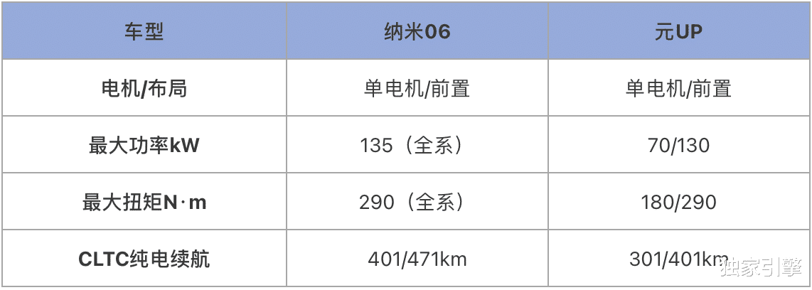 元UP虽有130kW高功率版本,但中低配车型仍以70kW电机为主,若是有预算限制,那么只有动力表现相对保守的款型可选,相较之下,还是纳米06全系标配的动力来的更实在。