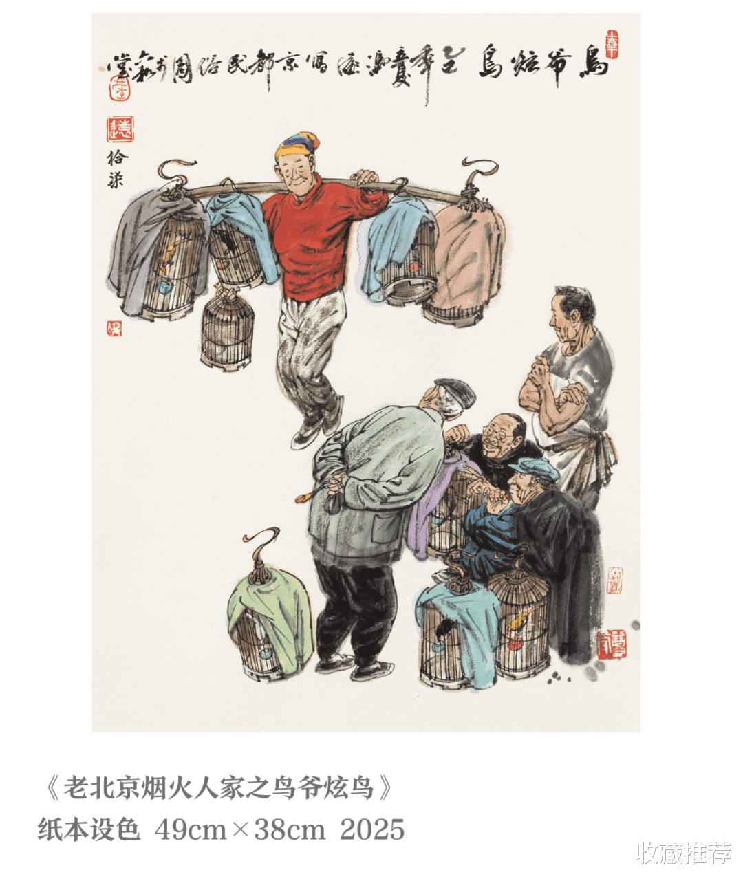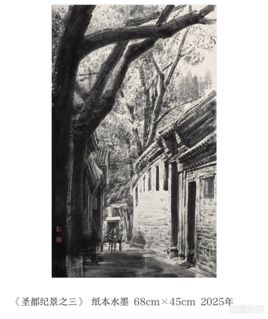 “古都纪景”以古今北京为画卷,在时空交响中钩沉古都文脉;“浮生写心”捕捉华夏各族儿女的神韵,于质朴形象中书写生命本真;“先贤遗音”对话往圣先贤,以笔墨为载体重现高逸的精神图景;“天地有情”则寄情草木山川,在自然意象中叩问宇宙生机。 四个篇章虽题材各异,却共同构筑了一个气象万千、融汇天人的艺术世界。