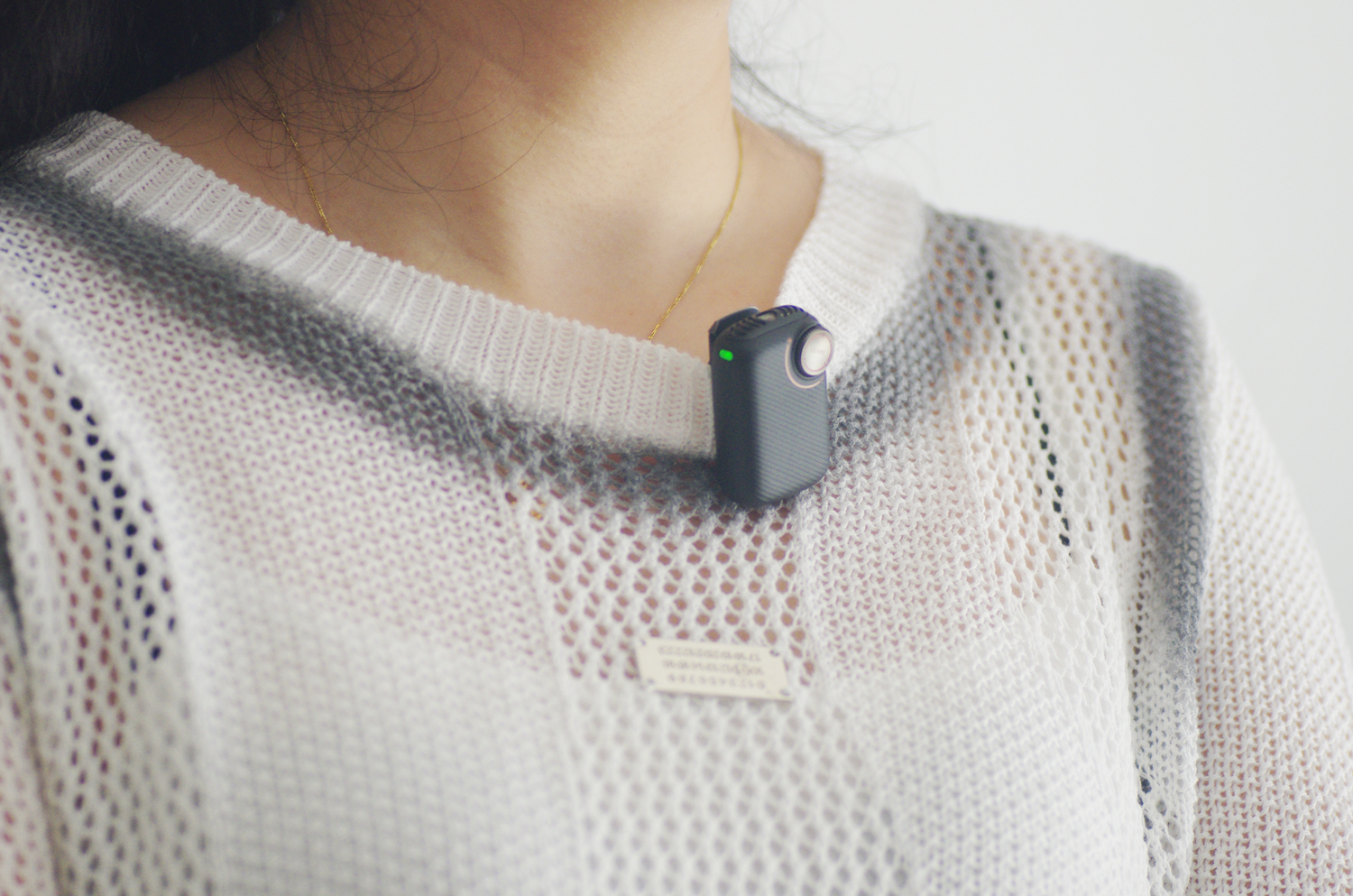 麦克风侧面是开关键和M功能键,顶部声音收集处,采用了全指向AI感知麦克风技术,内置6mm高灵敏度三线电容咪头,搭配360°全指向性收音设计,可以多角度无死角清晰捕捉人声。即便佩戴者轻微转身或低头,也不会出现声音断续或忽大忽小的问题,极大提升了拍摄自由度。