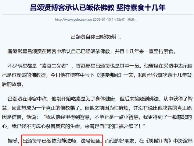 随后,吕颂贤又大大方方的承认,自己虽然没有剃度,却信佛吃素多年。