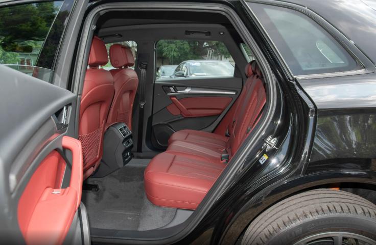 其次,也是因为奥迪Q5L的产品力确实拿得出手。作为一款车长4米77,车宽接近1米9,轴距超2米9的中型SUV,这款车的内部空间较为宽适。有不少车主表示后备箱空间是加分项,实测数据显示,后备箱进深达到980mm,开口高度为800mm,同时开口宽度达到1180mm,在二排座椅放倒后,内部空间较为阔绰,可以轻松放下婴儿车、露营装备等大件物品。此外,这款车的后排空间也比较可观,后排腿部空间实测有779mm,身高1米82的成年男性坐在二排也能轻松跷起二郎腿,这是常规紧凑型SUV无法比拟的。只不过,因为底盘配置机械传动轴的缘故,所以二排有比较突出的地台对后排乘客腿部空间的舒适性造成一定影响。