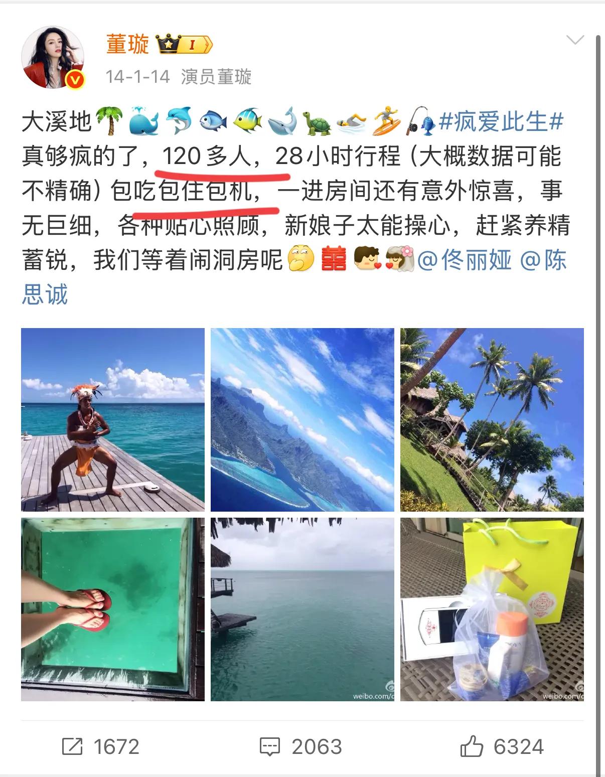 陈思诚当年大方到什么程度呢?当年请了120个人过去,全程包机包住,所以当年很多人都能看到大半个娱乐圈的人都在日本转机前往大溪地。