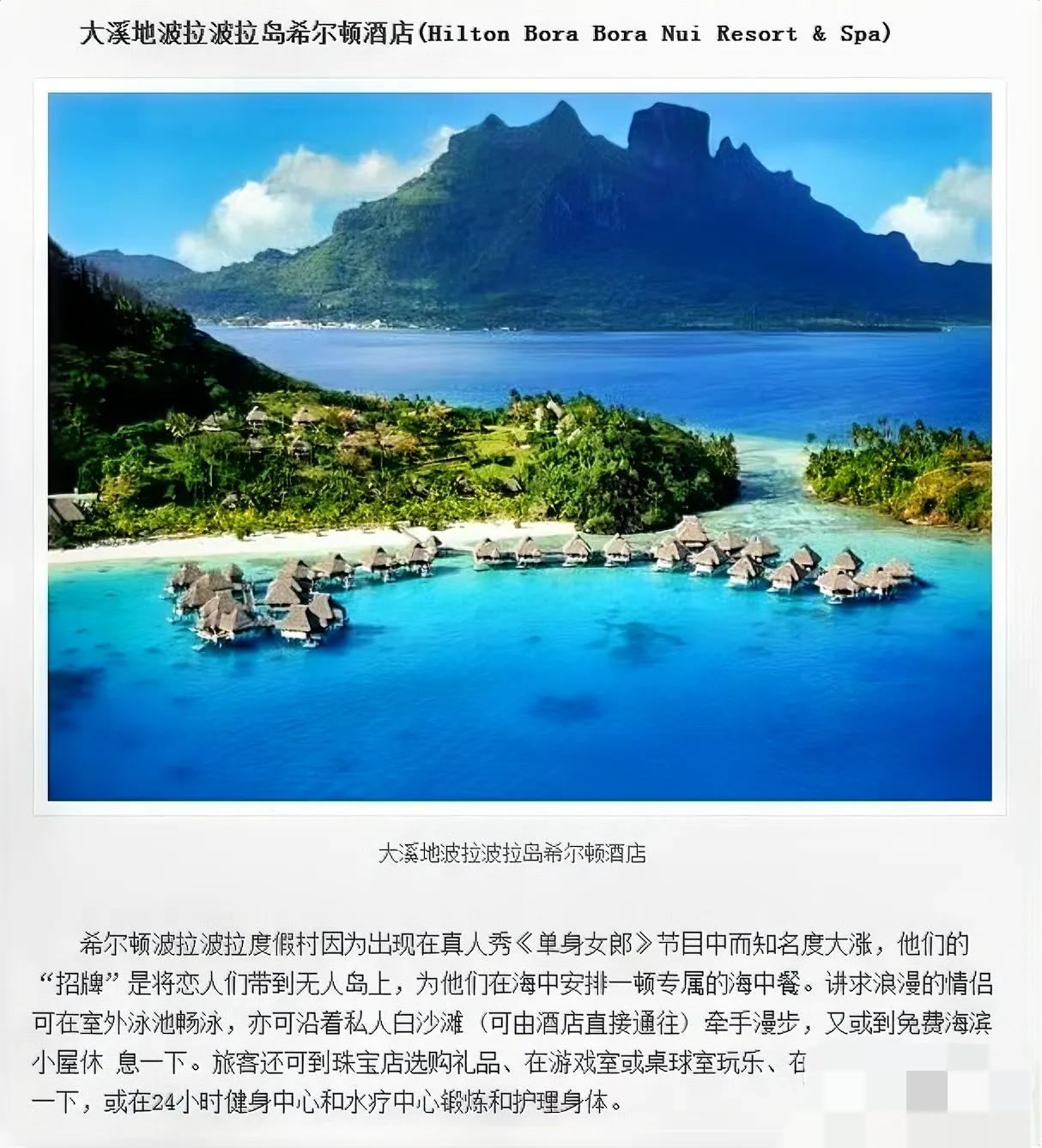 之所以这个地点比较小众,因为位置更加偏远位于南太平洋中心,国内没有直飞,光来回的机票都要4万起步,商务舱来回更是接近10万。