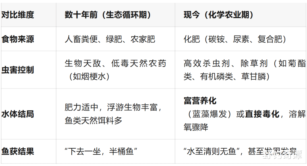 为什么那些小河沟里的鱼越来越难钓?不是因为钓鱼佬多了,也不是电工网工彻底管不住(虽然他们依然可恨),而是因为这些水体的生产力被破坏了,或者说,被“化学剥离”了。
