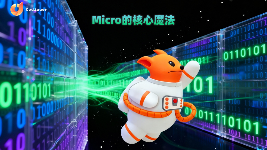 变量注入:Micro的核心魔法Micro框架最核心的功能就是"变量注入"。这就像是在一栋建筑的不同房间之间开了传递窗口,让信息能够自由流通。