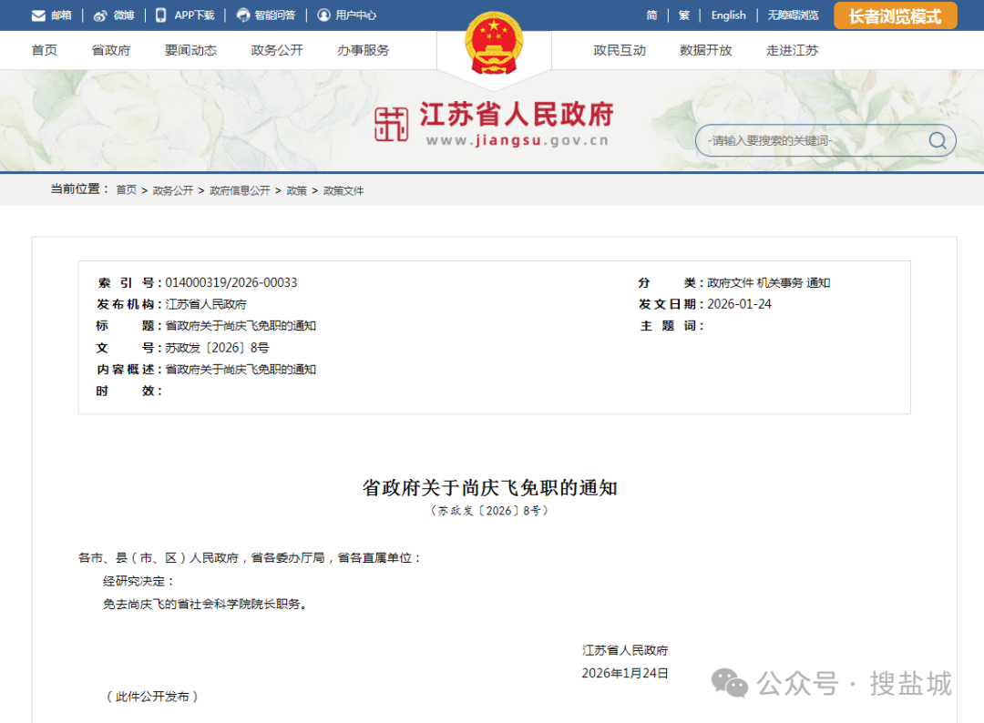 近日,江苏省人民政府正式发布人事任免通知,宣布免去尚庆飞同志省社会科学院院长职务。这一调整标志着尚庆飞在哲学社会科学管理