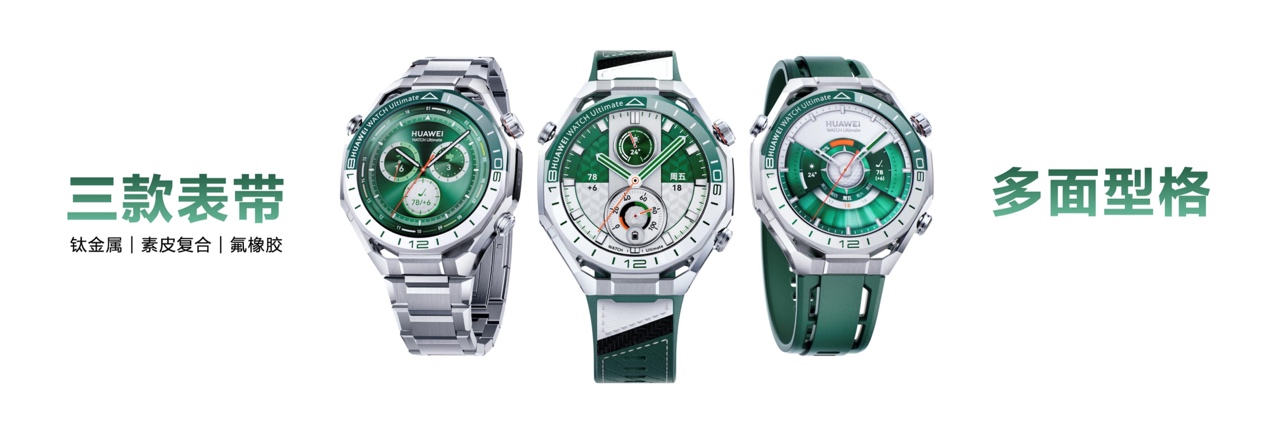 与传统高端腕表不同的是,华为WATCH Ultimate 2非凡探索充分考虑了高端用户的多场景穿搭需求,三款可替换表带,完全实现一表适配全场景。日常休闲、下场训练,用透气耐用的绿色氟橡胶表带;商务场合、轻奢聚会,换高级感十足的钛金属表带;想要温润质感、适配正式穿搭,素皮复合表带就是最佳选择。训练、比赛、休闲随意切换,一块表佩戴所有高端场合,这就是旗舰级的贴心与格调。