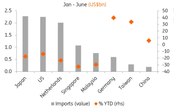 Figure: South Korea's imports of chip manufacturing equipment declined in the first half of 2024