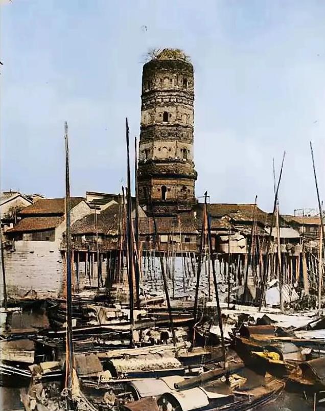 △1908年的安庆振风塔,白墙黛瓦的徽派民居,簇拥在四周。