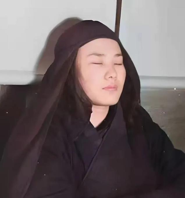 △1928年,九华山上的一位尼姑,正在打坐参禅。