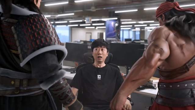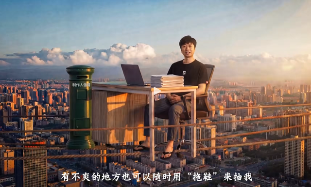 有趣的是,阿文不只是干活麻利,整活功力也一流。被玩家戏称为“敬文变法”的大规模优化,他自己看了直呼“慌得一匹”,还配上擦冷汗、被两个彪形大汉游戏角色直接架走的搞笑画面;聊到玩家用“拖鞋”拍他的梗,他干脆坐在高空办公桌上任由彩色拖鞋满天飞。这种毫无包袱的自嘲,把一个制作人从“神坛”拉了下来,变成了一个可以一起开玩笑的老玩家。