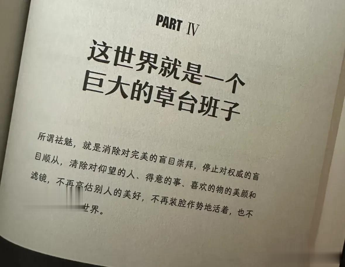 文章的最后,如何在这个世界站稳脚跟,要学会祛魅,首先对自己祛魅,然后对上位者祛魅,最后对自己加魅,穿着体面点,大胆点,先装模作样,再像模像样,最后再有模有样!