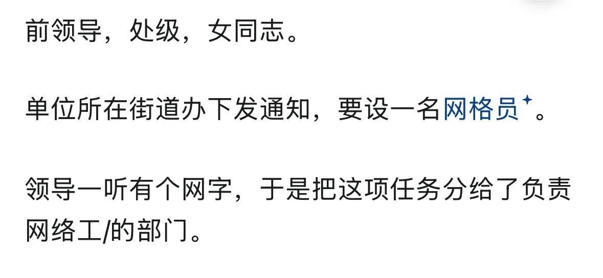 说实话,笔者第一次听到网格这个称呼,也以为和网络有关,后来才知道这是居委会里面的成员。