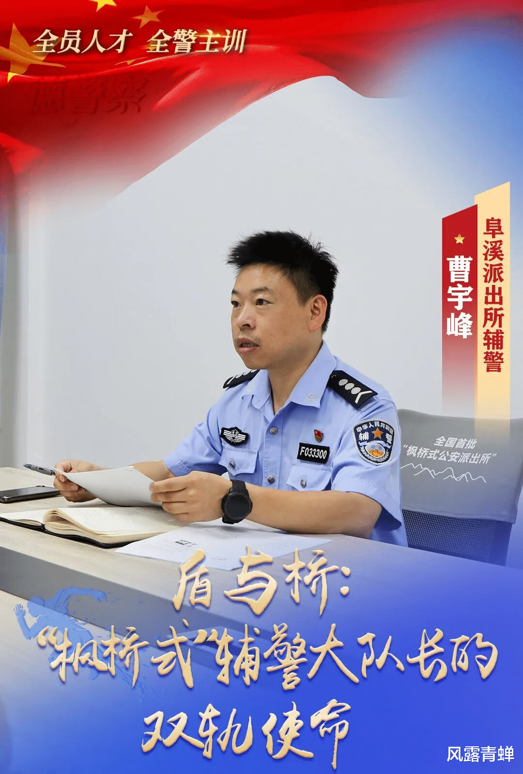 他叫曹宇峰,现年42岁,加入公安队伍20年1个月,是浙江省湖州市德清县阜溪派出所的一名辅警,也是阜溪派出所辅警大队长。