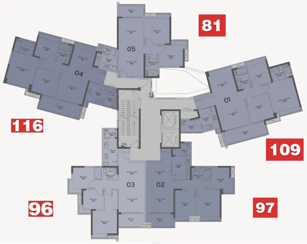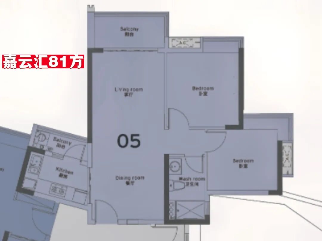 再来看主打现楼的嘉云汇,主推旧规81-116方二至三房,暂时没有四房。