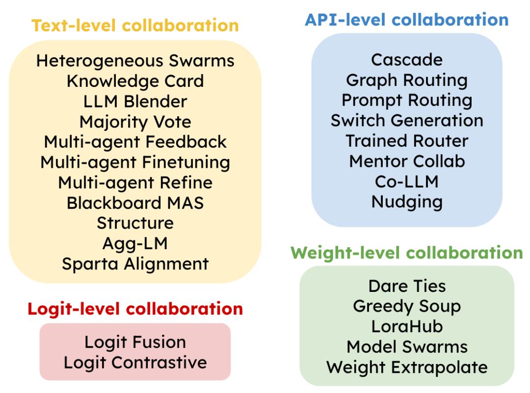 在训练与开发单个通用大语言模型 (LLM) 之外,越来越多的研究开始关注多模型协同 (model collaboration):由不同群体、基于不同数据、以不同目的训练的多个大语言模型,通过多样化的协同算法与系统架构,形成组合式人工智能系统。
