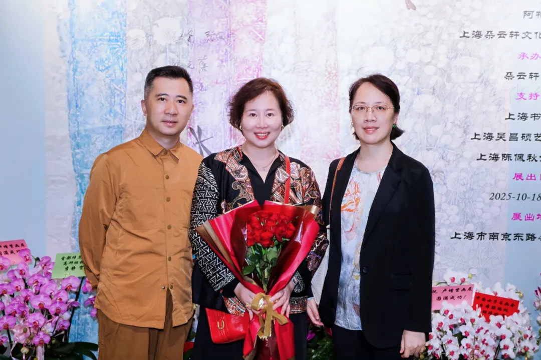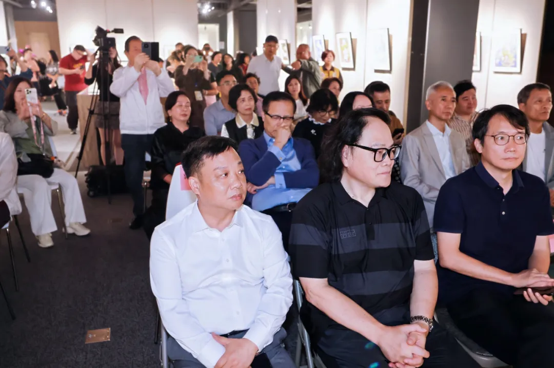 开幕式现场嘉宾云集,气氛热烈。出席本次活动的嘉宾包括:上海市美协副主席鲍莺、上海书画院主持工作副院长徐立铨、吴昌硕艺术研究协会执行会长张伟生、上海陈佩秋公益基金会理事长庞沐兰、上海连环画“非遗”传承代表人桑麟康等社会各界代表与艺术界同仁。他们对展览所展现的学术高度与艺术价值给予高度评价,并一致认为卢增贤以其独特的艺术语言,为中国岩彩的当代转化提供了全新的范式与思路。