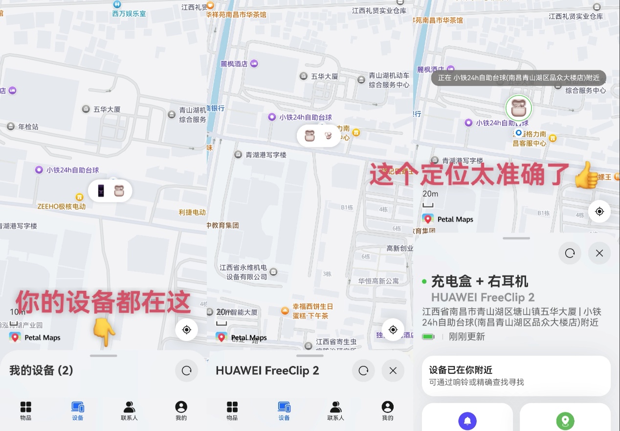 以我为例,我平时最担心的就是在商场、机场、车站这种人流密集的地方丢设备,找回的难度几何级增加。但是如果提前把查找设备功能打开的话,只要在桌面打开“查找设备”App,就可以精准显示遗失设备所在的楼层和具体店铺信息。目前这个功能已覆盖全国1万多个主流商圈、机场与车站,手机、耳机、平板等,真的非常实用。