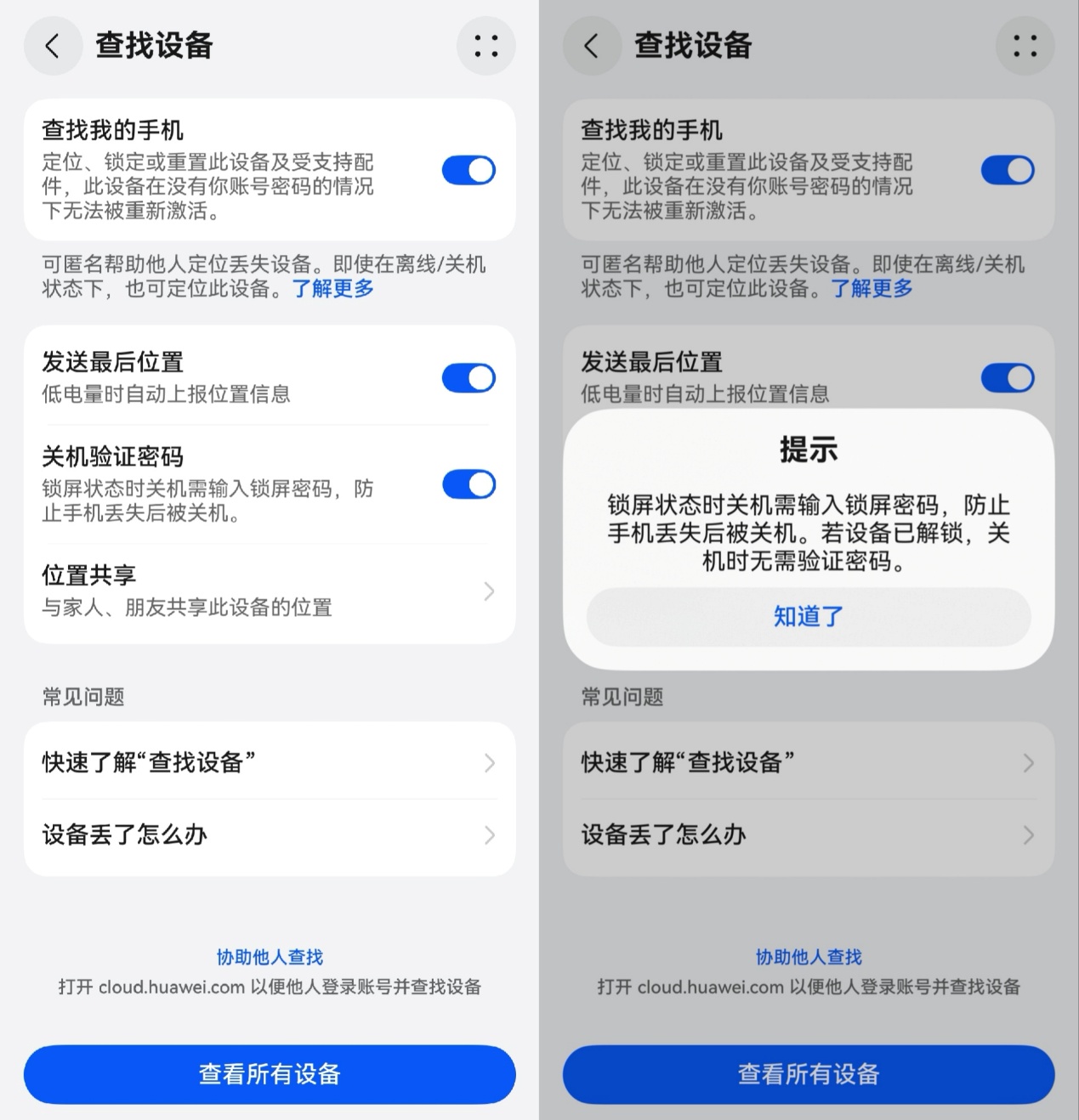 这些华为手机自带的功能强烈推荐大家用起来,现在就拿出手机,打开设置 → 查找设备 → 打开“查找我的手机”,再顺手把 “关机验证密码” 打开,保障手机的安全。当然大家也可以像我一样根据自己需求订阅大一点云存储空间,轻松实现数据+设备“双重保险”。