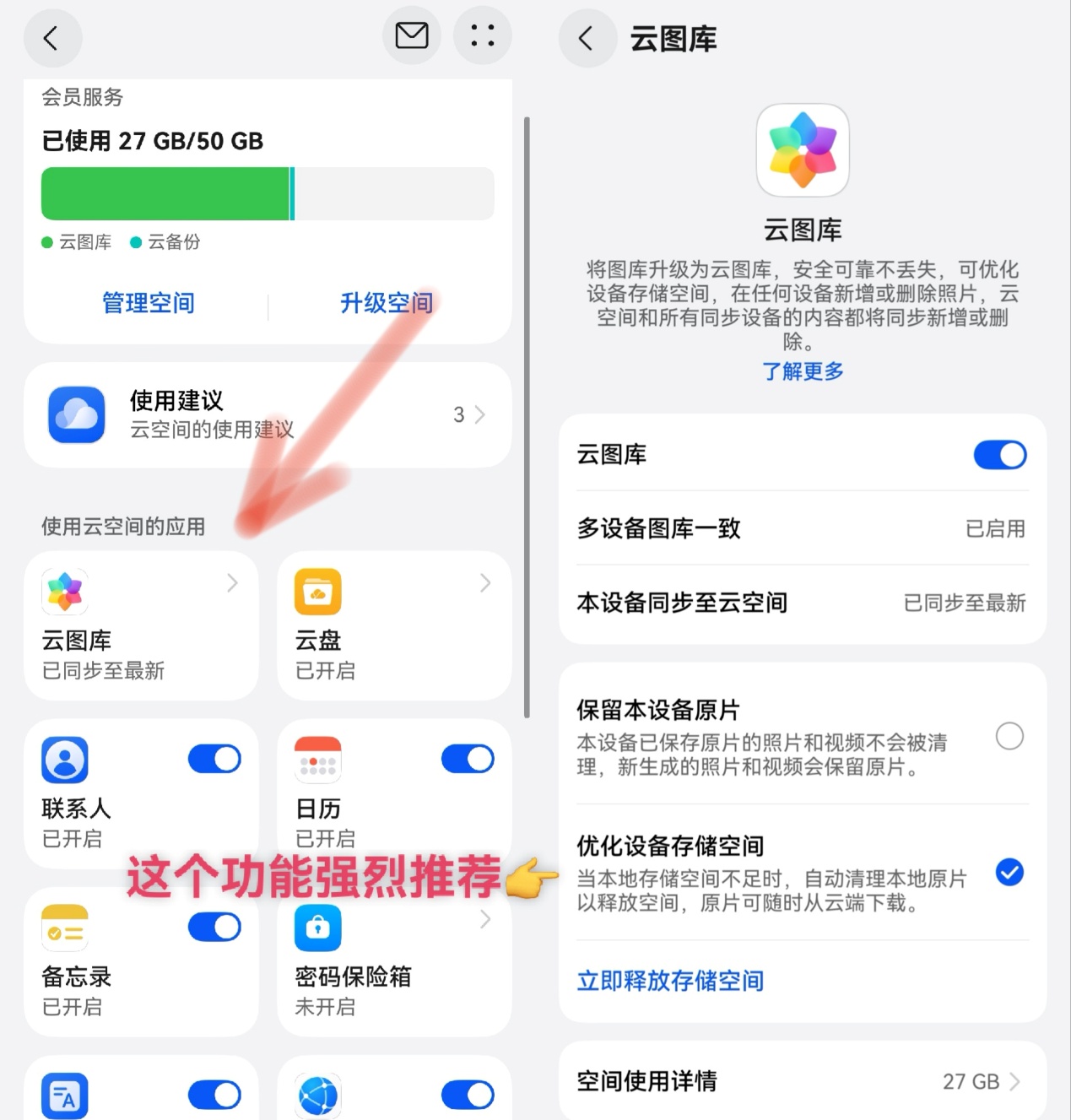 如果遇到极端情况手机不能找回,比手机本身更令人惋惜的是手机里的照片、视频等个人记忆。这也是我为什么强烈建议大家同步打开华为云空间的“云图库”的原因,这项功能可以把本地所有照片、视频会自动同步到云端,即使设备丢失或损坏,用其他设备登录统一个华为账号,就能找回珍贵影像。