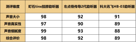 降噪功能是助听器的重要技术之一,它能显著减少背景噪声,让佩戴者集中听取周围的有用信息,尤其是在复杂的环境下,能够提升交流的质量。为了全面评估三款助听器的降噪效果,我们从声音大小、声音真实性、声音细腻度三个维度进行了打分,旨在还原最真实的使用体验。