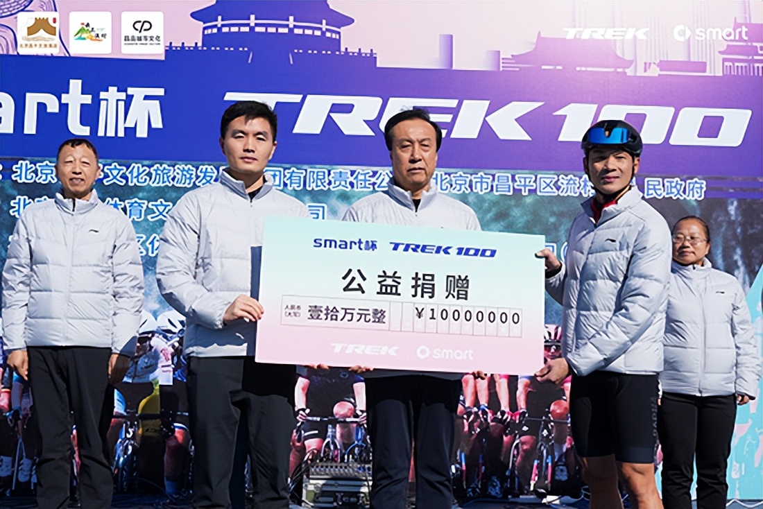 在开幕式环节,TREK中国总经理许伟端与smart区域高级经理朱峰共同代表组委会,向北京市昌平区慈善协会捐赠人民币十万元。善款将用于支持本地青少年体育发展及特殊群体关怀项目,持续践行“为爱骑行”的赛事初心。