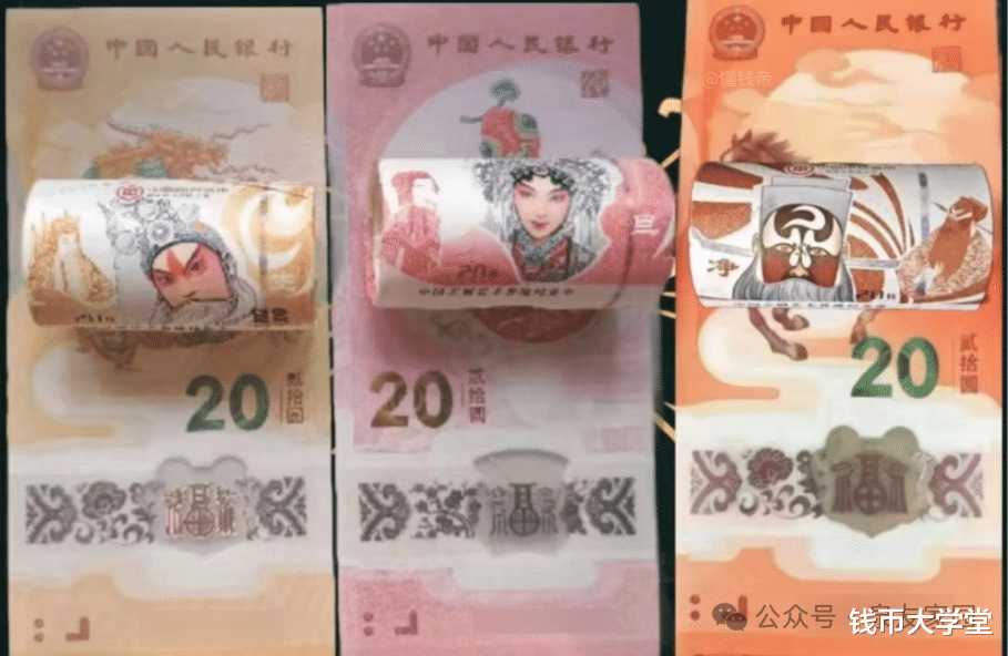在兑换京剧净角币后,就有藏友给发现:京剧生角币的卷币纸是金黄色,龙钞也是金黄色!京剧旦角币的卷币纸是玫瑰红,蛇钞也是玫瑰红!