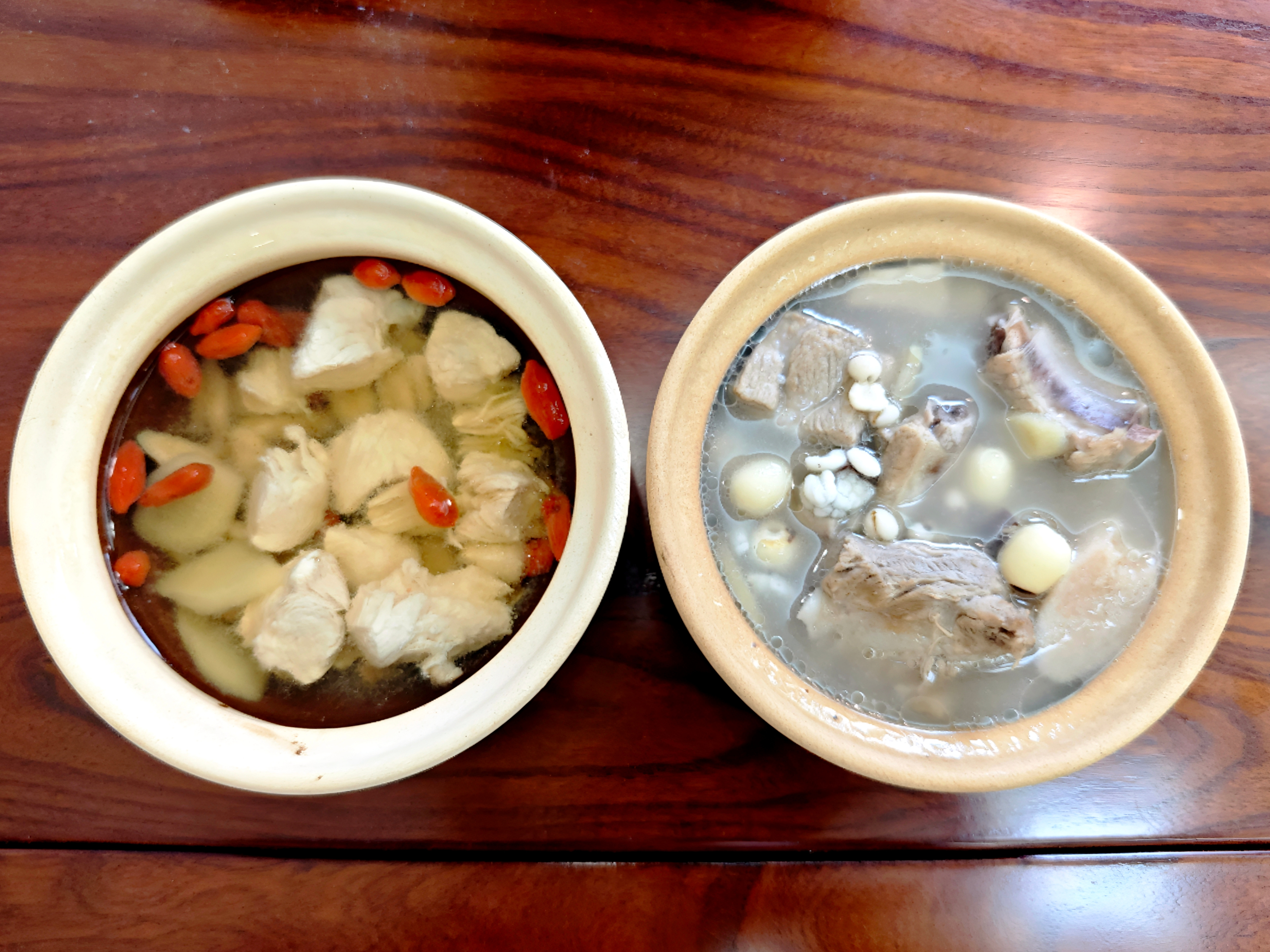 四神汤炖排骨材料:炒薏米、茯苓、山药、芡实各10g,排骨100g。做法:排骨焯水后与药材共煮1小时,加盐调味即可。