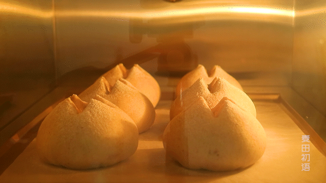 送入烤箱下层,调整上火为210度,下火为190度,时长为20分钟。入炉后马上喷蒸汽5秒,这样表皮会更加酥脆。如果没有蒸汽烤箱,就直接喷洒水雾吧,虽然效果不够理想,但有总比没有强。