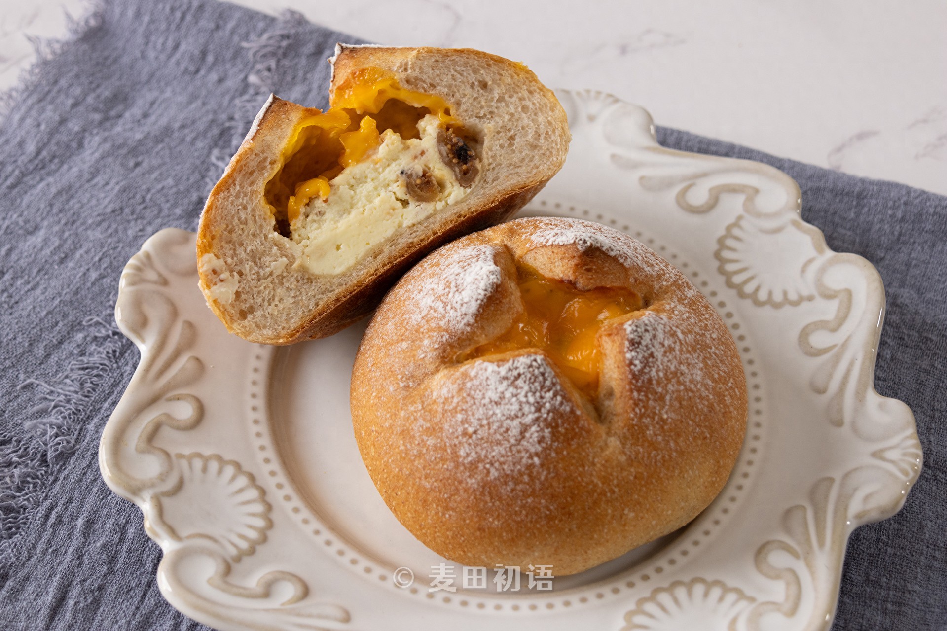 无花果乳酪欧包不仅好吃,而且颜值也是很高的。由于采用软欧包的做法,面包体的口感是外脆里软,内馅则是甜中带酸,奶香超级浓郁,是芝士脑袋不容错过的面包。