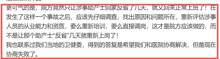 盛先生找医院要说法的时候,医院给该助产士停岗反省了几天。