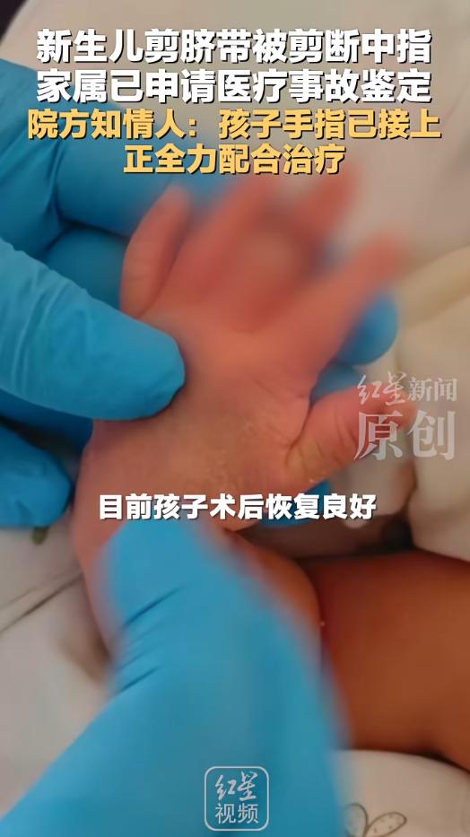 据红星新闻1月5日报道,江苏一名新生儿在出生的时候,被助产士剪脐带没想到将中指给剪断了。