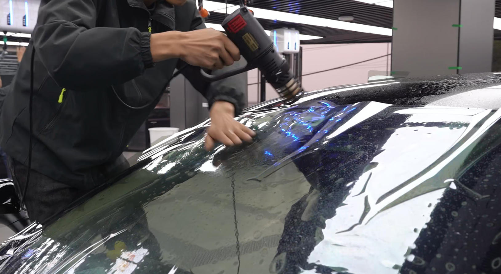 施工环境:专业门店需配备恒温恒湿、喷淋降尘的无尘车间,以控制0.5微米以上的尘埃,避免产生尘点、气泡。施工流程的标准化(如深度清洁、漆面脱脂)也直接决定了膜与漆面/玻璃的长期贴合度。