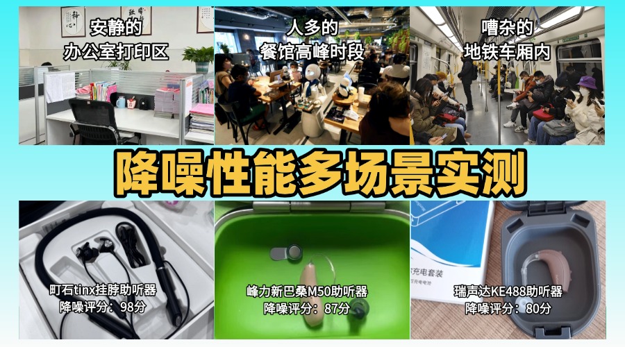 测评方法:这次测试,我选择了办公室打印区、餐馆高峰时段与地铁车厢内进行降噪测试,使用声压计记录噪声强度,并观察三款助听器在高噪环境中的降噪反应。打分重点为“恒定噪声处理能力”、“突发噪声屏蔽效果”、“背景噪声持续干扰感”。