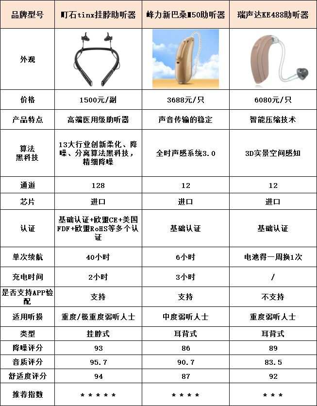 降噪效果好,耳朵才不容易累!如果降噪做得不到位,背景杂音会让你听得更费劲,甚至让耳朵一直处于疲劳状态,时间一长,听力可能会受影响。降噪效果好,能清晰听到别人讲话,而不会被周围的噪音干扰。影响降噪的因素有很多,像通道处理技术、发声单元和移频技术。接下来我们看看几款助听器在降噪方面的表现。