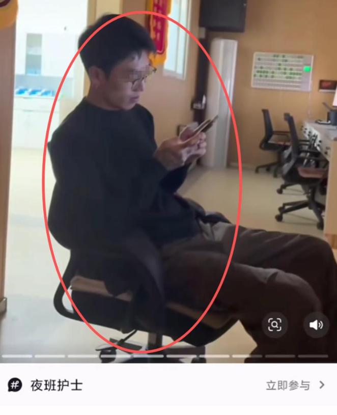 女护士在一旁翘着二郎腿,满脸惬意地当起了“监工”,两人时不时嬉笑打闹,完全没把医疗工作的严谨性放在眼里。