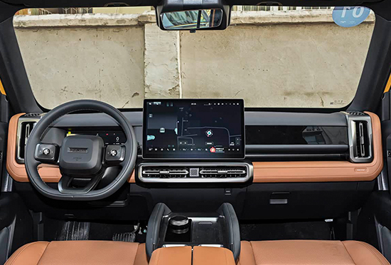 内饰设计比较简约,平直的线条与外观造型遥相呼应,明显偏向硬派越野SUV的整体感觉。配置方面,新车搭载了内嵌式全液晶仪表以及15.6英寸悬浮式中控屏,内置高通骁龙8155车机芯片。