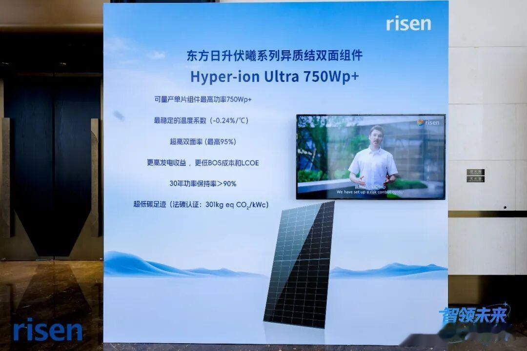会上,东方日升介绍了异质结(HJT)技术的持续演进路径,分享了公司n型与p型HJT产品最新成果与核心竞争优势。东方日升n型HJT组件产品(Hyper-ion伏曦系列)专为大型地面电站而生,在标准尺寸下,量产功率最高可达750Wp+,双面率超过90%,功率温度系数低至-0.24%/℃。其高功率、高双面增益、低衰减与低温度系数的特性,使其在沙戈荒等严苛环境的大基地项目中,能实现更高的全生命周期发电量,是降低地面电站LCOE的优选方案;