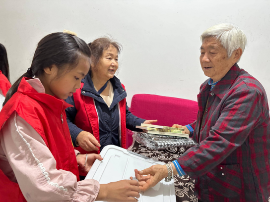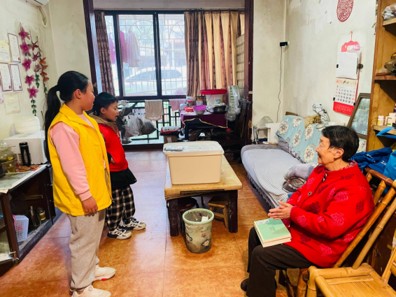 与此同时,“基础整理收纳”服务也在有序进行。银龄志愿者们凭借其细致入微的观察力和生活智慧,带领着小志愿者们一同协助老人整理家居环境。他们耐心地帮助老人归置杂物、清洁桌面、整理衣物,并传授一些简单实用的收纳技巧,改善老人的居住便利性。小志愿者们在这个过程中,不仅锻炼了动手能力,更从银龄志愿者身上学到了如何体贴入微地关心他人,如何用实际的行动表达尊重。他们小小的身影忙碌着,或是递送物品,或是擦拭家具,与银龄志愿者默契配合,共同为老人们营造了一个更加整洁、舒适的生活空间。