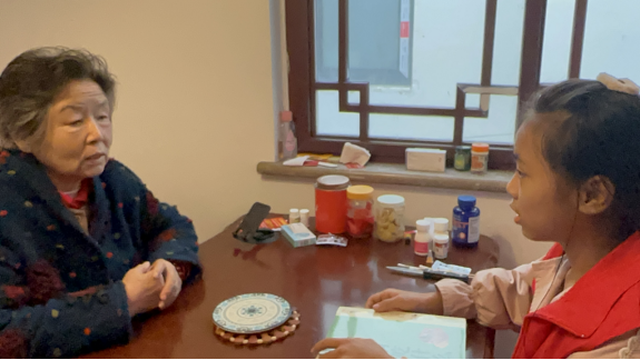 在“儿童陪读”环节,小志愿者们展现出极大的热情与爱心。他们围坐在老人身旁,用尚且稚嫩却无比真诚的声音,为爷爷奶奶们朗读书籍上的内容、书本中的精彩篇章,或是分享自己喜爱的童话故事。有的孩子还主动与老人交流,询问他们年轻时的经历,聆听那些沉淀在岁月里的智慧与故事。老人们脸上洋溢着慈祥而满足的笑容,眼神中流露出久违的光彩。他们不仅听到了久违的朗朗书声,更感受到了来自下一代纯真的关怀与陪伴,有效驱散了平日的孤寂,精神世界得到了极大的慰藉与充实。这一刻,童声与银龄交织,温暖在小小的客厅里静静流淌。