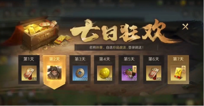 七日狂欢活动更是不能错过。第二天送橙将孙策,孙策的武力值和技能都非常出色,能成为新手玩家前期征战的得力助手。后续赠送的自选战法包,能让玩家根据自己的武将搭配来选择最合适的战法,这大大增加了游戏的策略性和趣味性。不少新手玩家在拿到这些奖励后,都兴奋地在玩家社群里分享自己的喜悦。
