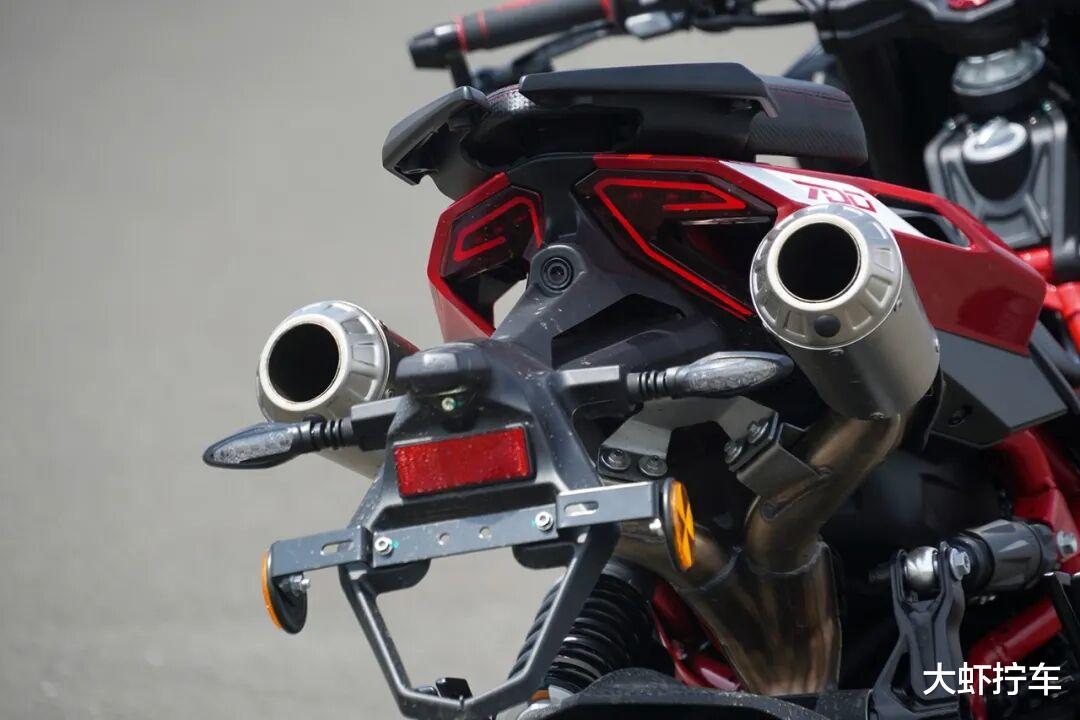 当然,就实际的驾驶体验来说,它的前段动力输出并不像外形看上去那么凶猛。相比采用同动力总成的QJ其他车型,它的前段动力似乎被刻意压制成了更加线性易控的表现,只在中段输出以后才能发挥这款发动机暴躁而又干脆的真正本性。在进入最大功率转速段,后座垫上感受到的震动会随着转速的上升而开始扩大化,但车把和脚踏上的震感却并不明显。