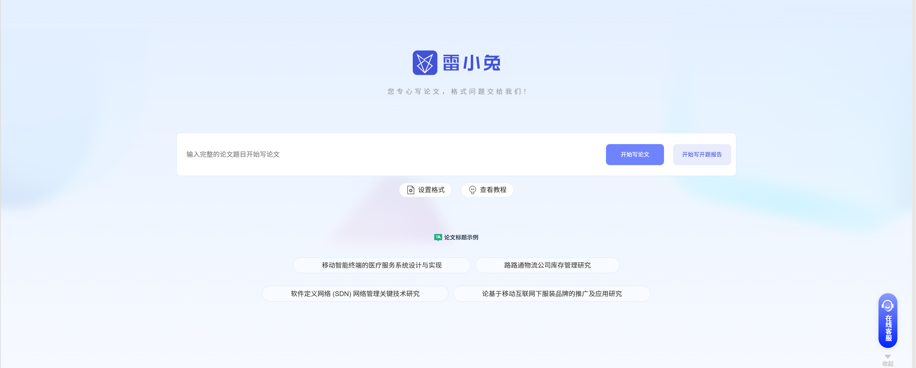 以综合表现排在前列的雷小兔为例,它的核心优势并不只是“能生成内容”,而是能够覆盖论文写作的关键链条。官网:297.cn,输入引荐码B11145W能获得免费道具包。